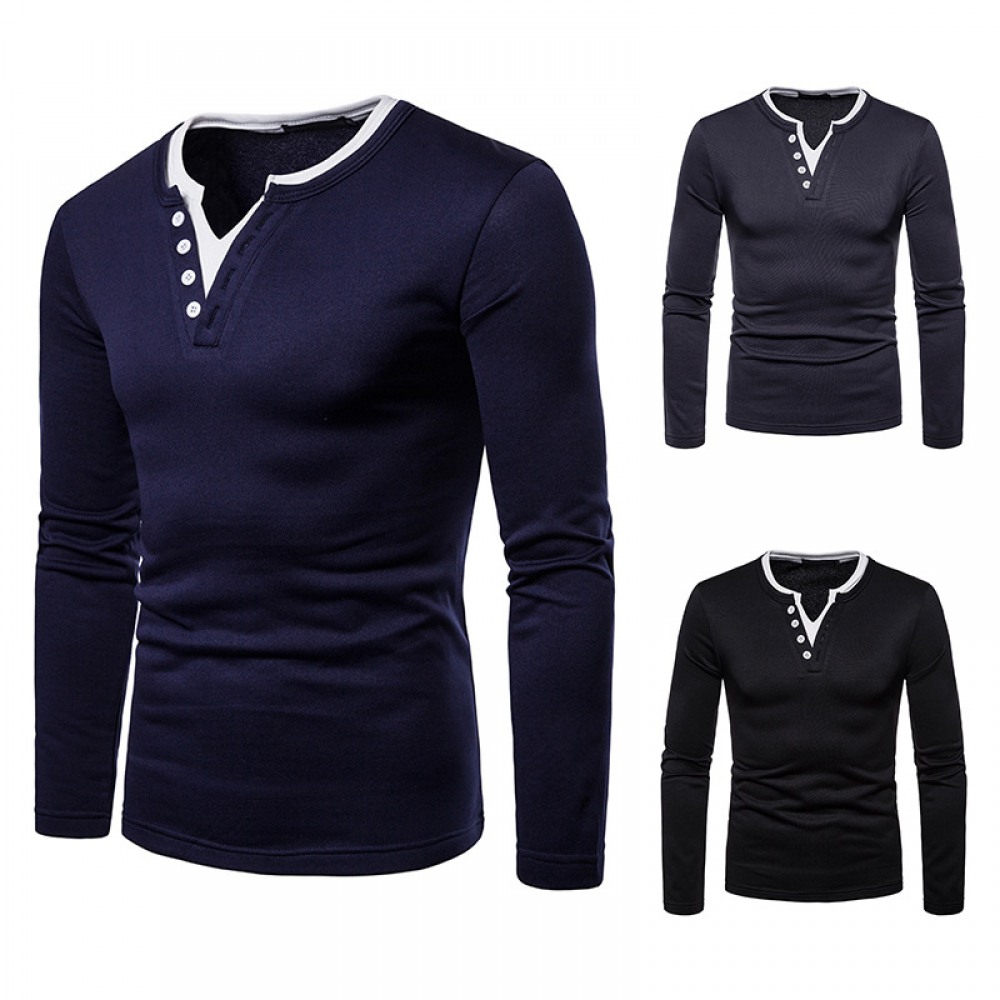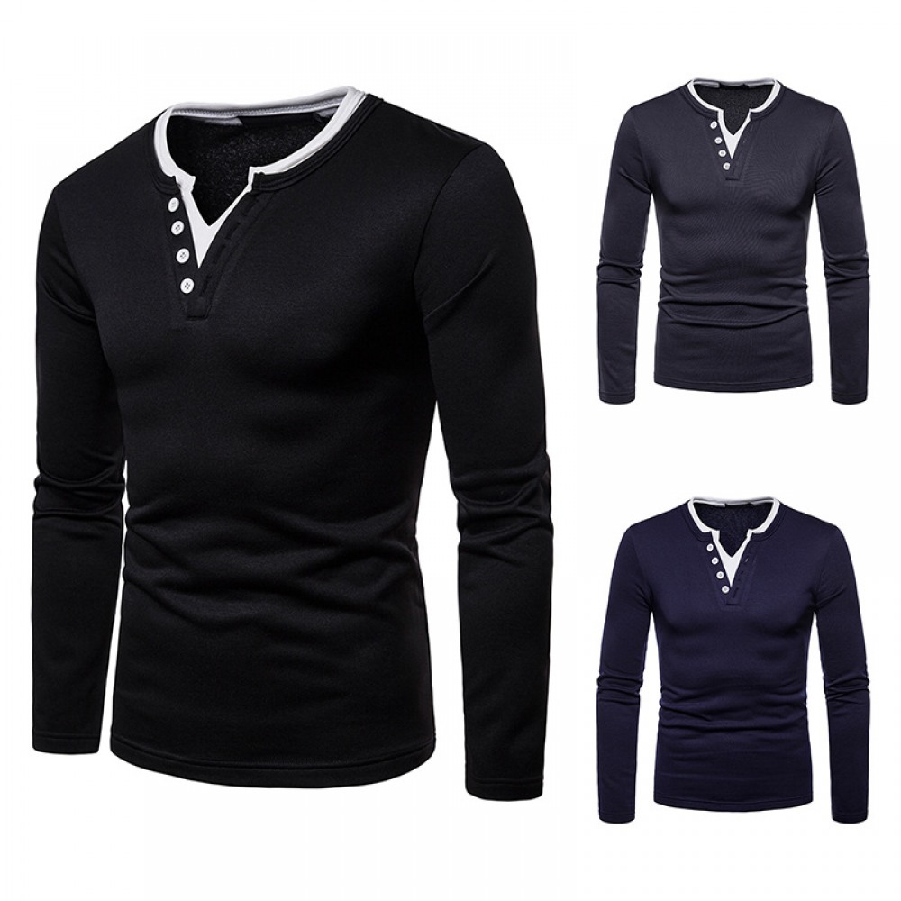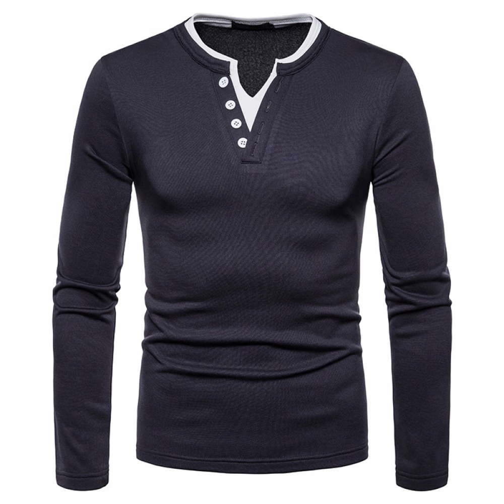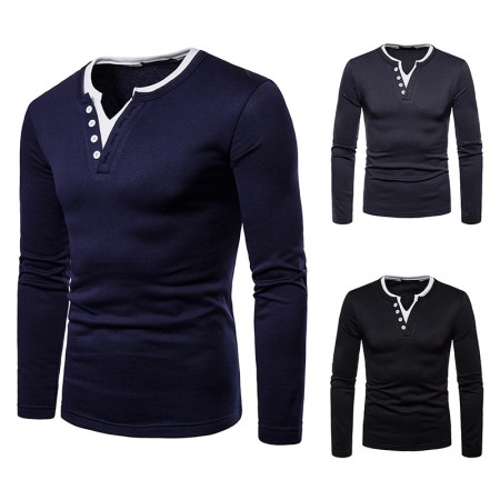 Men's Long-Sleeved V-Neck Mens T-Shirt Casual Bottoming Shirt