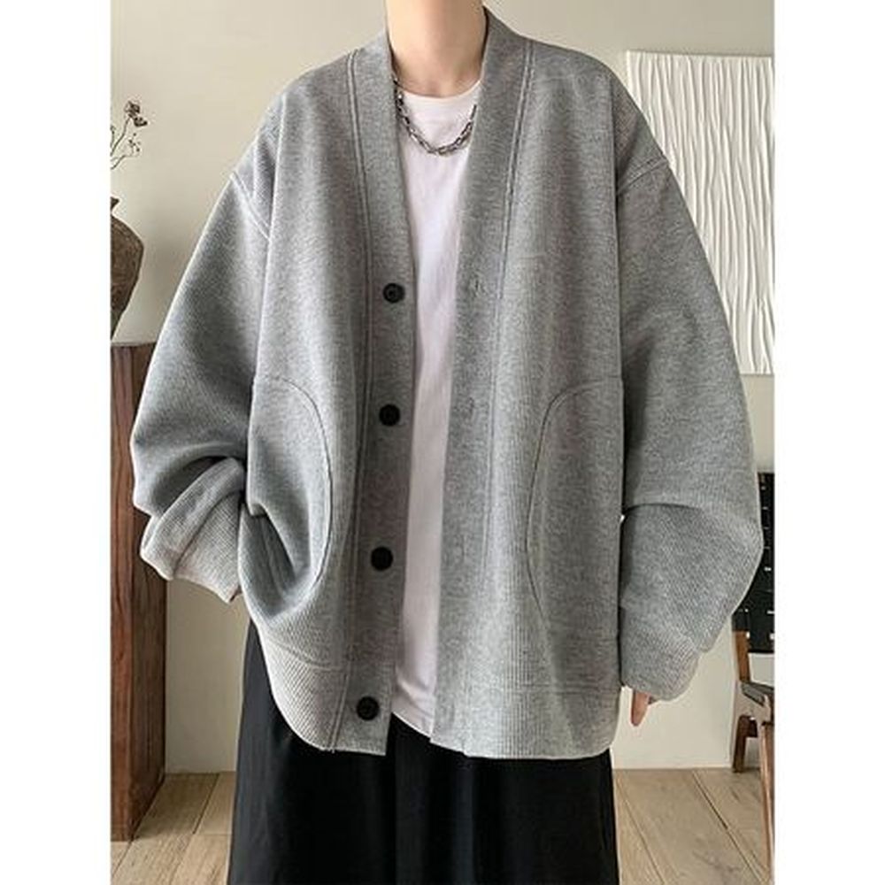 Men's Solid Color Jacket Mens Trendy Loose Cardigan Coat
