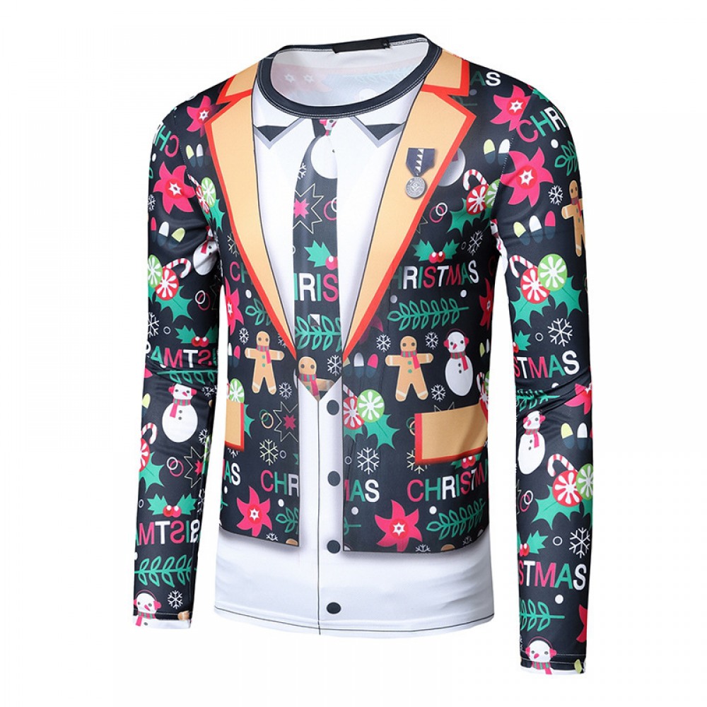 New 3D Personality Printing Fashion Men's Christmas Long-Sleeved T-Shirt